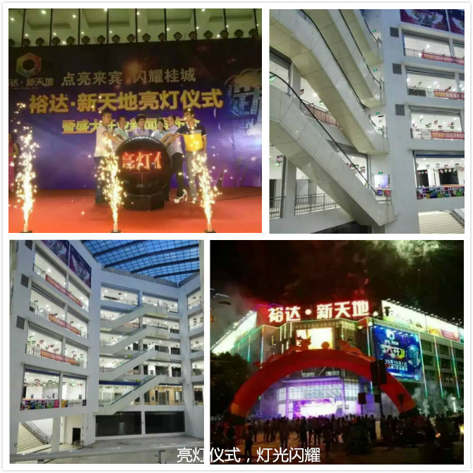 当晚8点18分,裕达新天地主题购物广场灯光正式点亮。一刹那,灯光闪耀,商场内、商场外墙五彩的LED灯绚丽缤纷,超大型屏幕不断播放着一幕幕精美的短片,闪耀了全城。让人们不禁感叹裕达新天地主题购物广场让来宾城市商业有了新的期待。