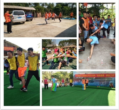 本次活动设定了三人四足、袋鼠跳、跳大绳、拔河和龙潭取水及烧烤等团体活动,活动现场欢声笑语、热闹非凡。在三人四足的比赛现场,队员们齐足疾走,协力横跨整个赛场,围观员工们为场上队员呐喊助威,加油鼓劲。在跳绳比赛现场,挥动的绳索如银蛇般飞舞,跳动的员工似彩蝶般纷飞,个个采飞扬……………各个赛场不时爆发出阵阵叫好声与欢笑声。无论是参赛者还是围观者,每个人都以各自的方式展现着参与运动健身的热情与风采,激情与紧张齐在,友谊与比赛同存。