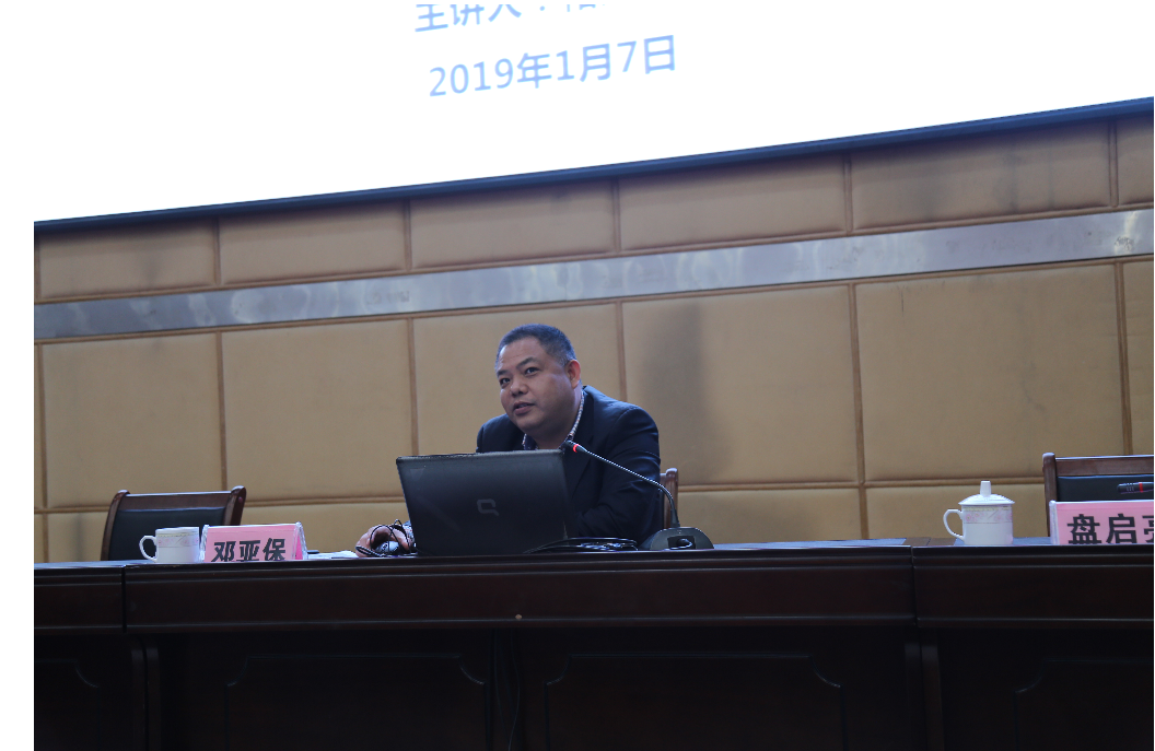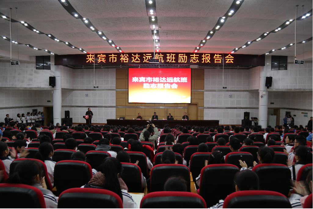 2019年1月7日下午4点15分,来宾市“裕达远航班”励志报告会在来宾市高级中学图书馆一楼报告厅顺利召开。来宾市政协主席韦善国、市政协秘书长廖妙灵,市教育局党组书记盘启亮及我集团董事长兼总裁邓亚保出席了报告会。