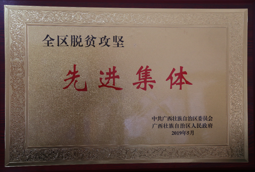 日前,广西壮族自治区人民政府以及中共广西壮族自治区办公厅印发了《关于表彰全区脱贫攻坚先进集体和先进个人的决定》,广西裕达集团有限公司以突出的社会贡献及良好的口碑被光荣授予“全区脱贫攻坚先进集体”荣誉称号。本次广西共表彰了全区脱贫攻坚先进集体100个、全区脱贫攻坚先进个人100人。