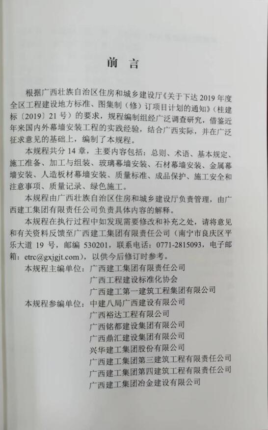 近日,由公司参编的《幕墙安装工程施工工艺规程》的广西工程建设地方标准,经广西住房和城乡建设厅批准发布,于4月1日起正式实施。