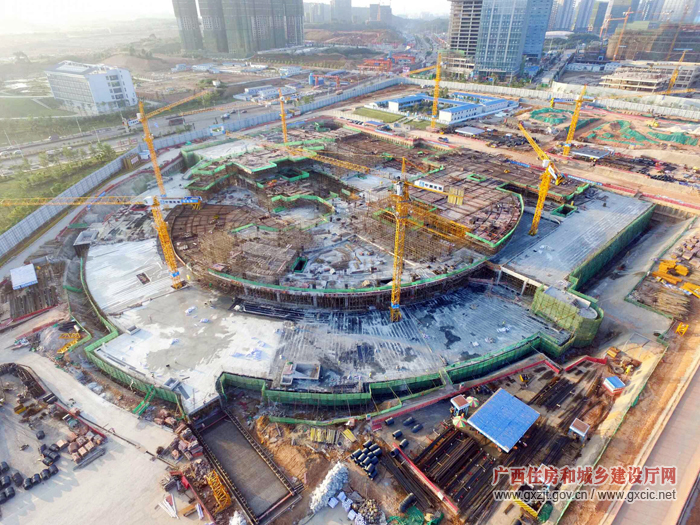 在广西国际壮医医院施工现场,有铁军称号的中建八局1100多名建筑工人正热火朝天地进行施工。2013年以来,广西全面开放建筑市场,大量的外来企业进入广西,为确保建筑市场平稳有序的运行,广西通过编制招标文件范本、推进电子化招投标、全面实施诚信管理、加大检查督查力度、加强企业总部管控等方法对建筑市场实行了360度全方位监管。