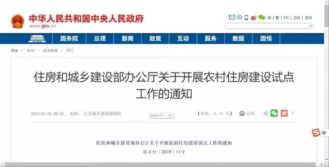 总结:关于农村住房建设试点政策大下发,2019年也将会建设一批示范农房,随着工作的推展,未来也将会在各地实施。