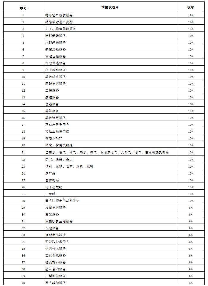 附:目前增值税税率表