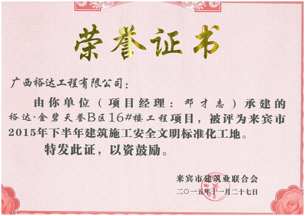 2015年下半年建筑施工安全文明标准化工地(金碧天誉B区16#楼)